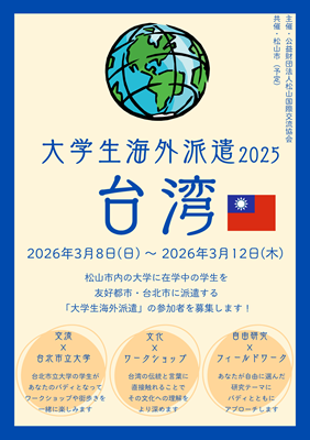 まつやま国際交流センター(MIC) Matsuyama International Center 〒790-0003 愛媛県松山市三番町6丁目4-20 コムズ1階 TEL:089-943-2025 FAX:089-931-2041 E-mail:mail@mic.ehime.jp 窓口:火~日曜9:00~17:30 ※月曜が祝祭日の場合は開館し、翌日以降直近の平日に休館) |