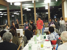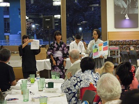 恒例の松山サクラメント姉妹都市協会主催による ウェルカムパーティーでの班の出し物“めくってドン!”