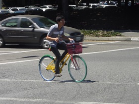 ご存じGoogleは広大な敷地の中で自由に従業員はGoogle使用の自転車を乗りこなし、敷地内を移動します。