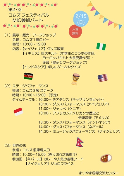 | 「第27回コムズフェスティバル」開催のお知らせ! | ||||||